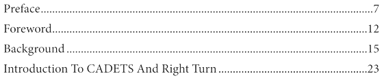 TABLE OF CONTENTS OF RIGHT TURN